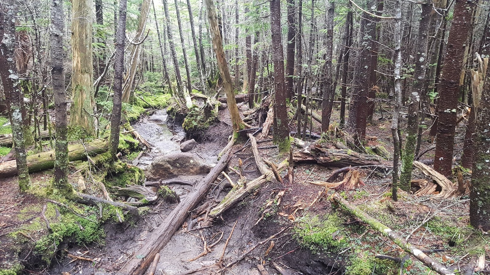 En prenant la direction pour le Table Top, le sentier devient alors non balisé mais est facile à suivre (du moins en été et automne, avant les neiges). Le sentier grimpe alors constamment pour environ 1 km et durant ma présence, le sentier était relativement boueux!