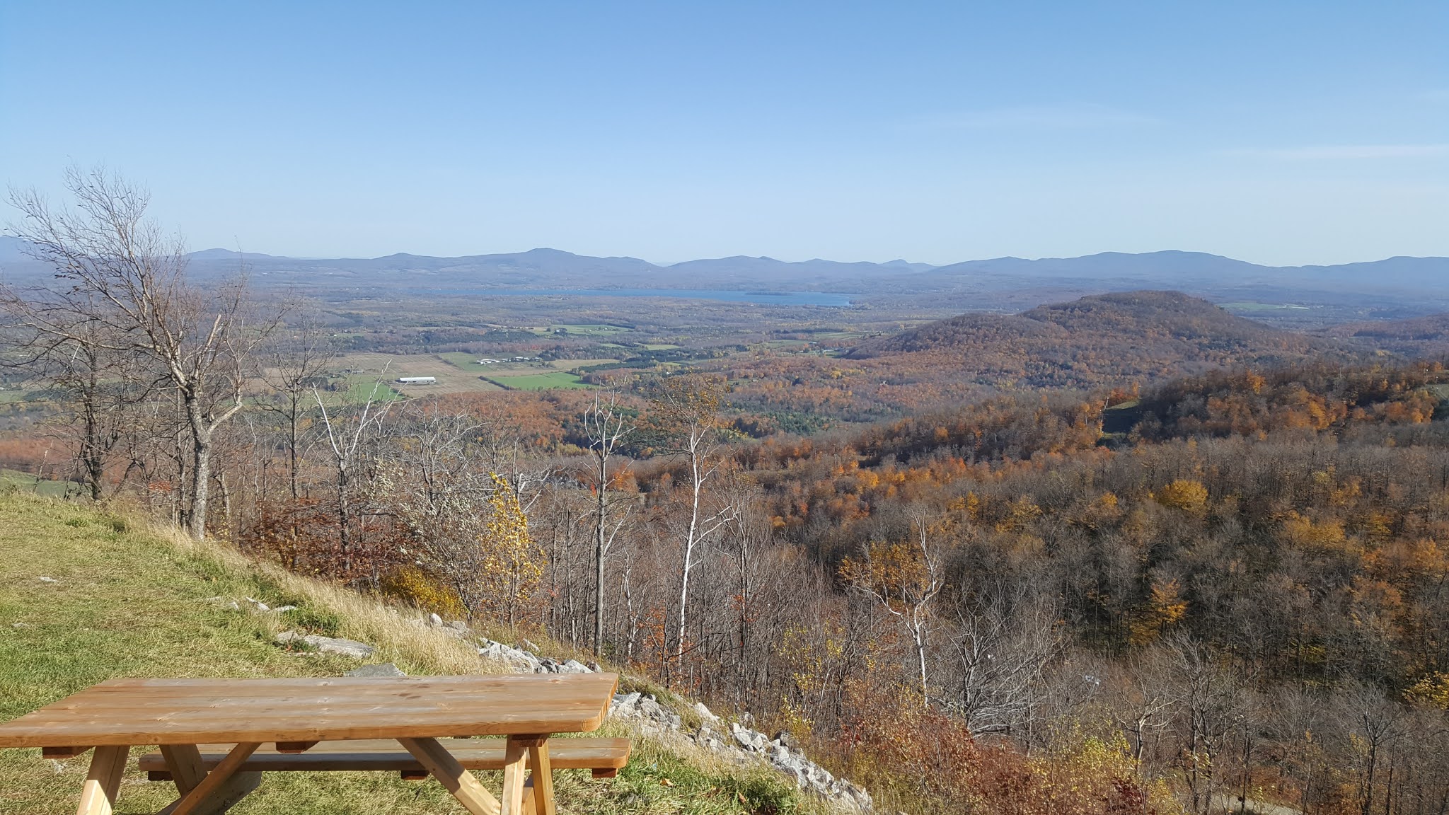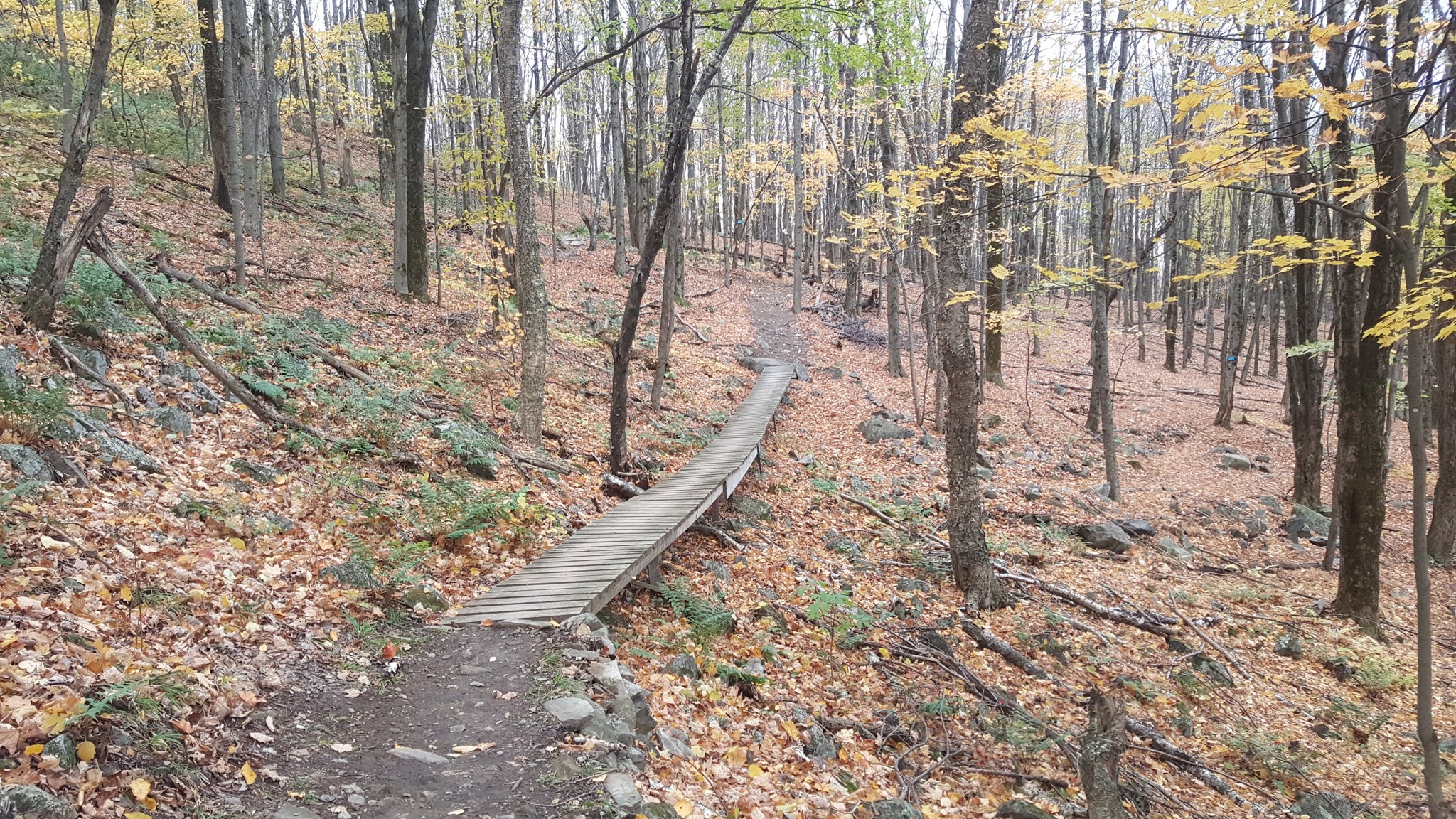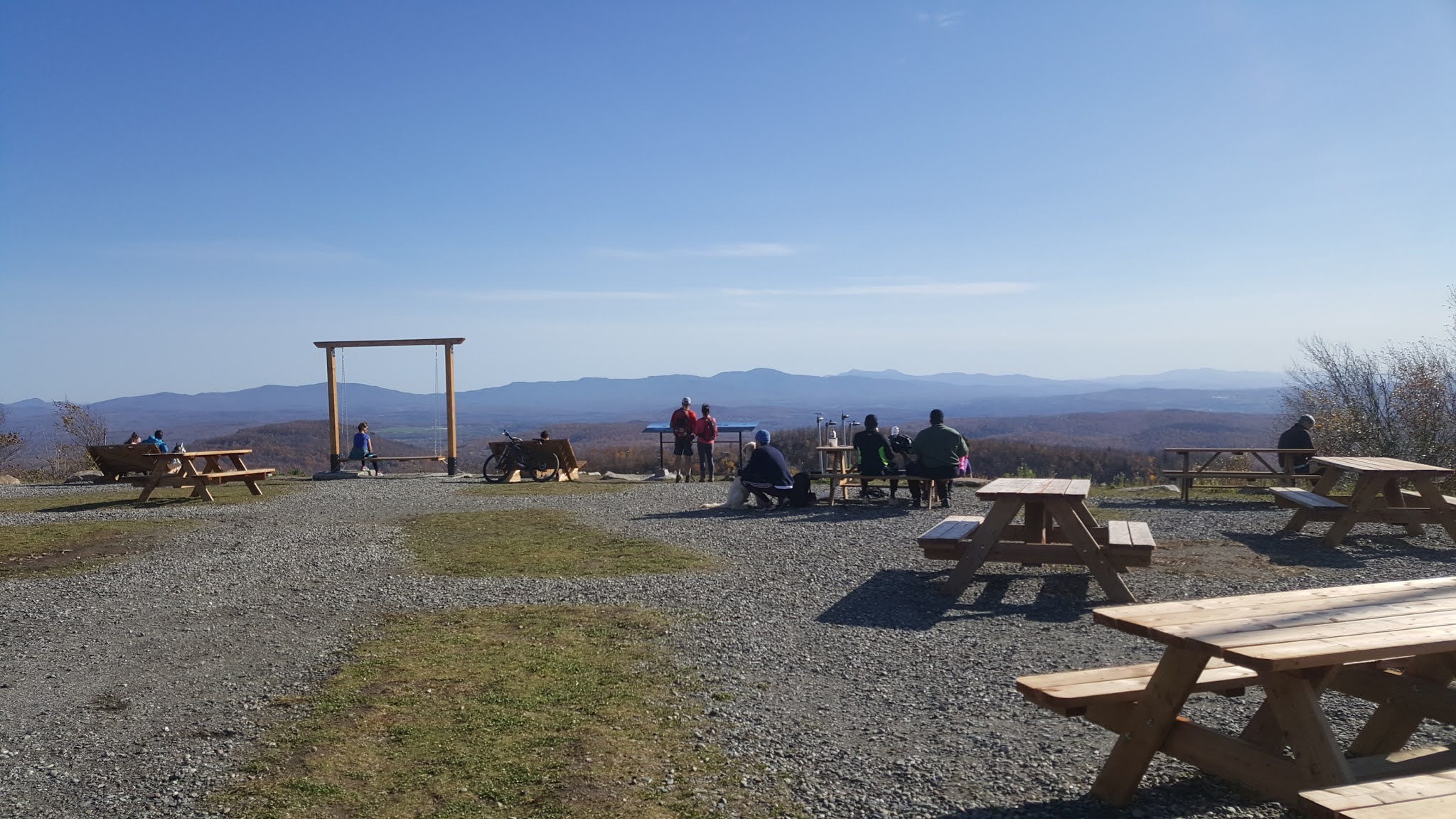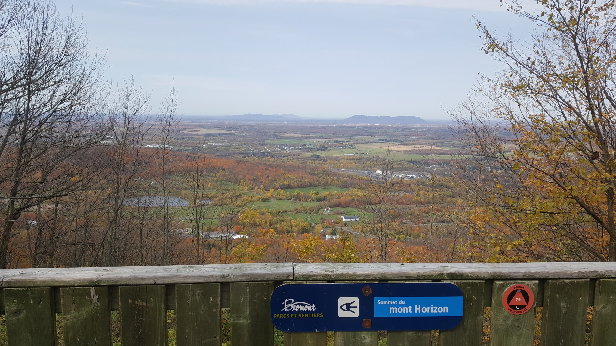 Voici la vue à partir de ce récent belvédère. On y voit clairement le mont Brome, notre prochain sommet pour cette randonnée 🙂