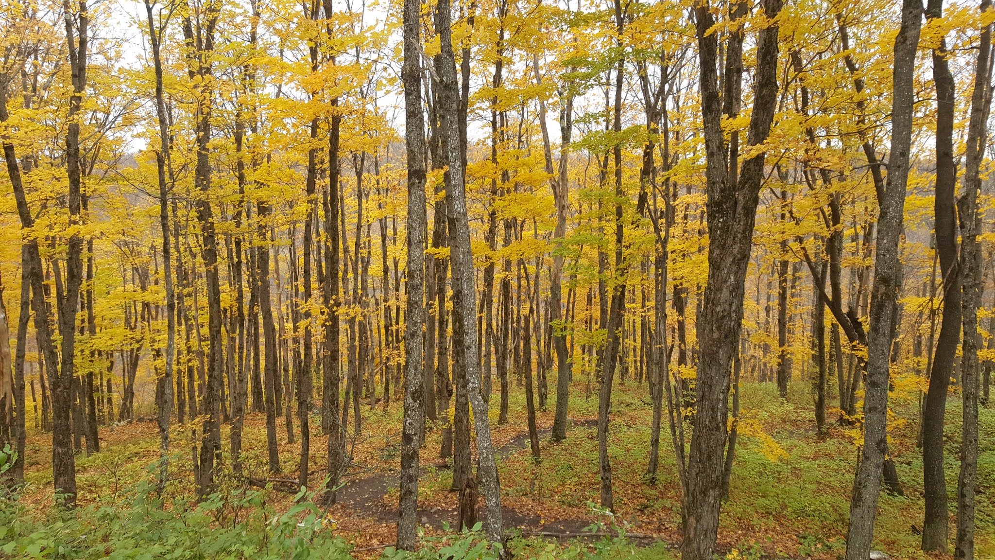 On poursuit dans les forêts de feuillus pour rejoindre le mont Horizon.