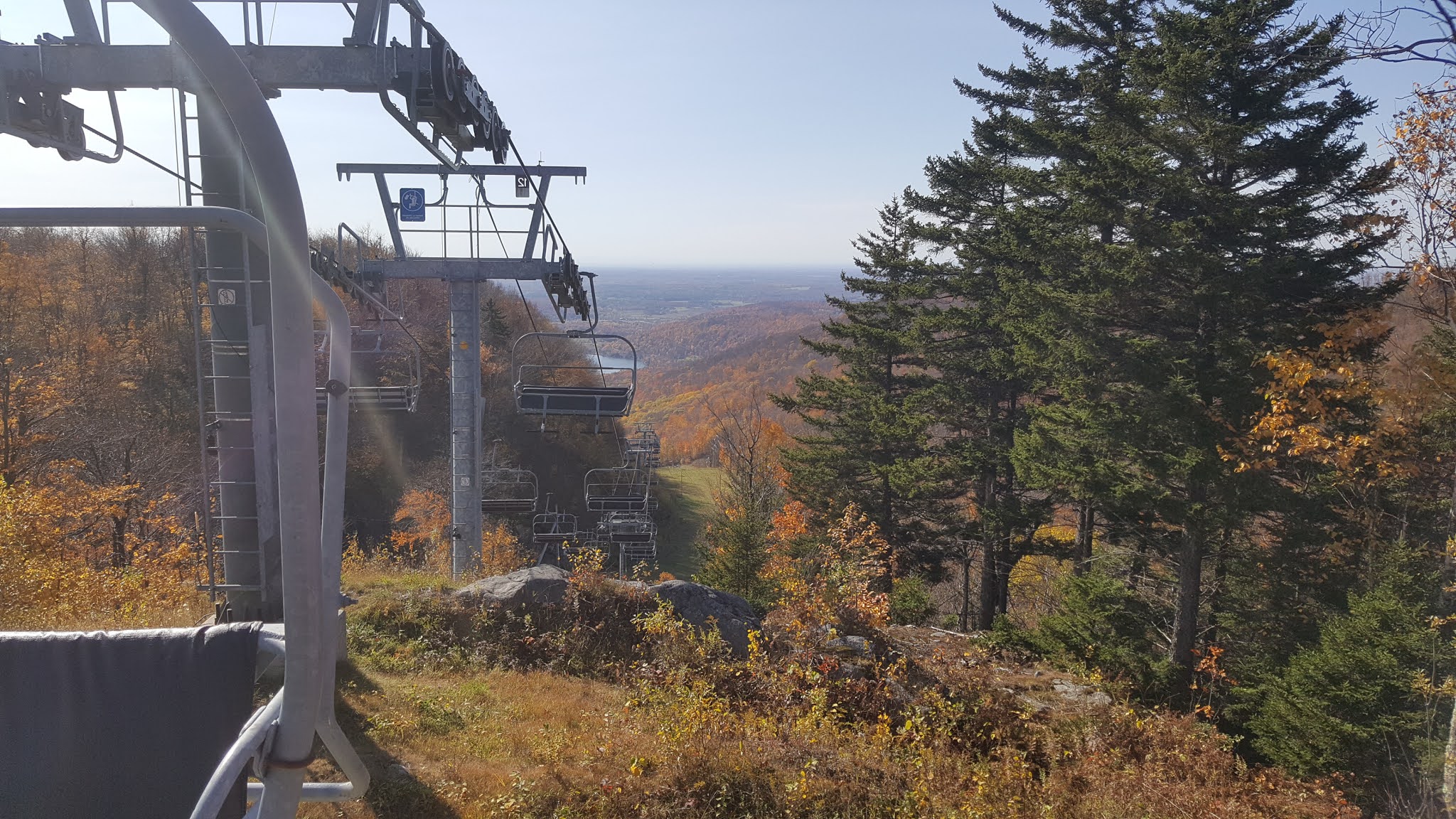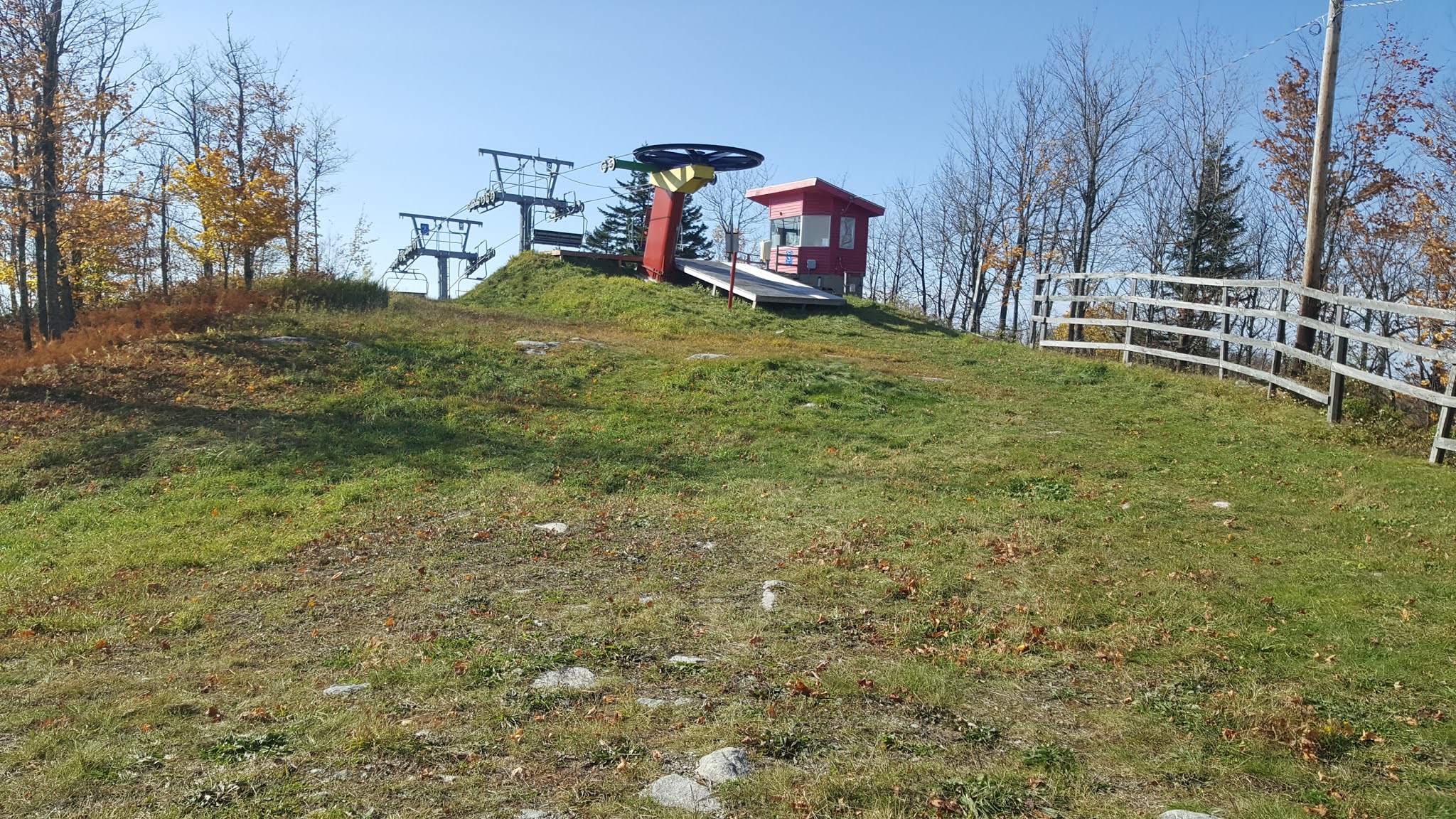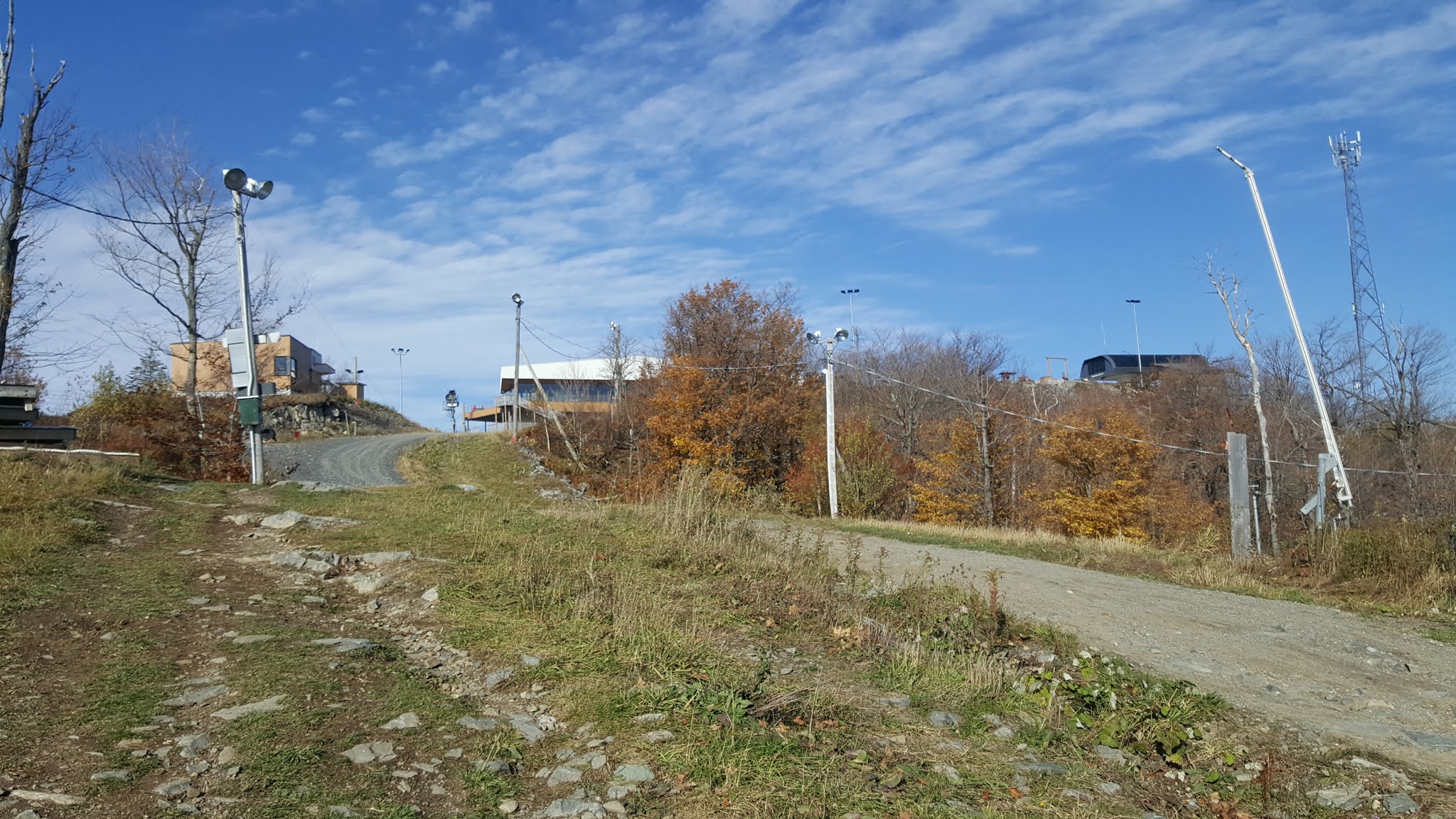 On se retrouve maintenant les deux pieds sur les pentes de ski, les sommets étant au haut de celles-ci. Les vues sont ouvertes. Il y a un joli belevédère aménagé tout près du sommet du mont Spruce, endroit à privilégier pour la vue dont le mont Brome tout près.