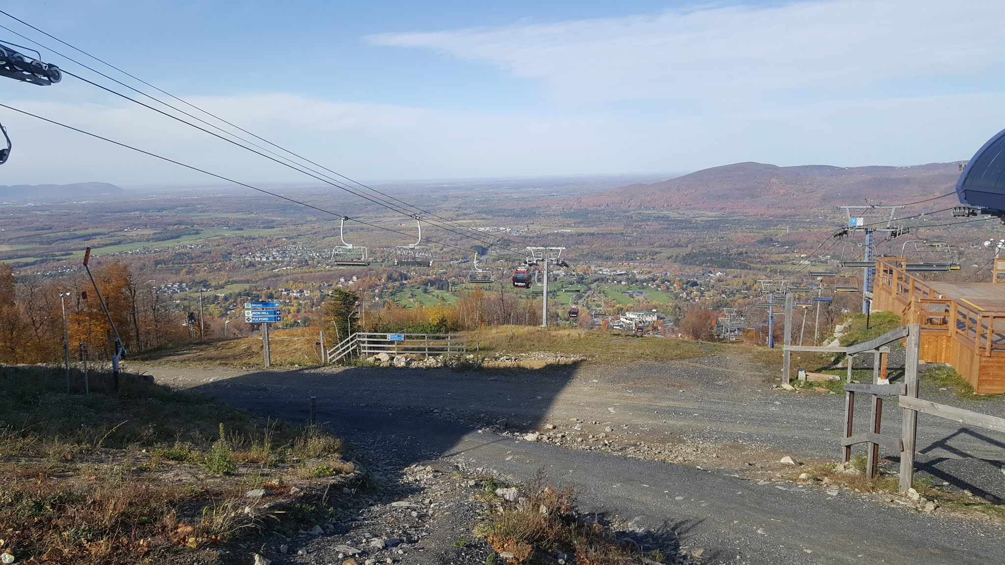 Le fin de la boucle se fait en descendant par l’une des pistes de ski vers votre point de départ. C’est évidemment la plus grande descente de cet itinéraire et celle-ci peut être difficile par endroit dû à son inclinaison prononcée… c’est le temps d’y aller «mollo» et de profiter de la vue qui se dresse devant vous tout au long de cette dernière étape ! 😎