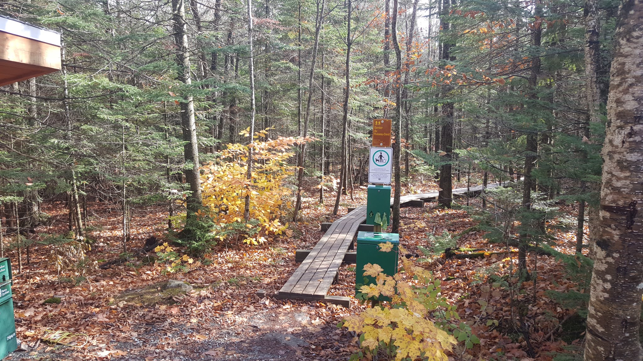 Voici le point de départ. Le sentier fait partie du Parc National du Mont Orford et est très bien balisé.