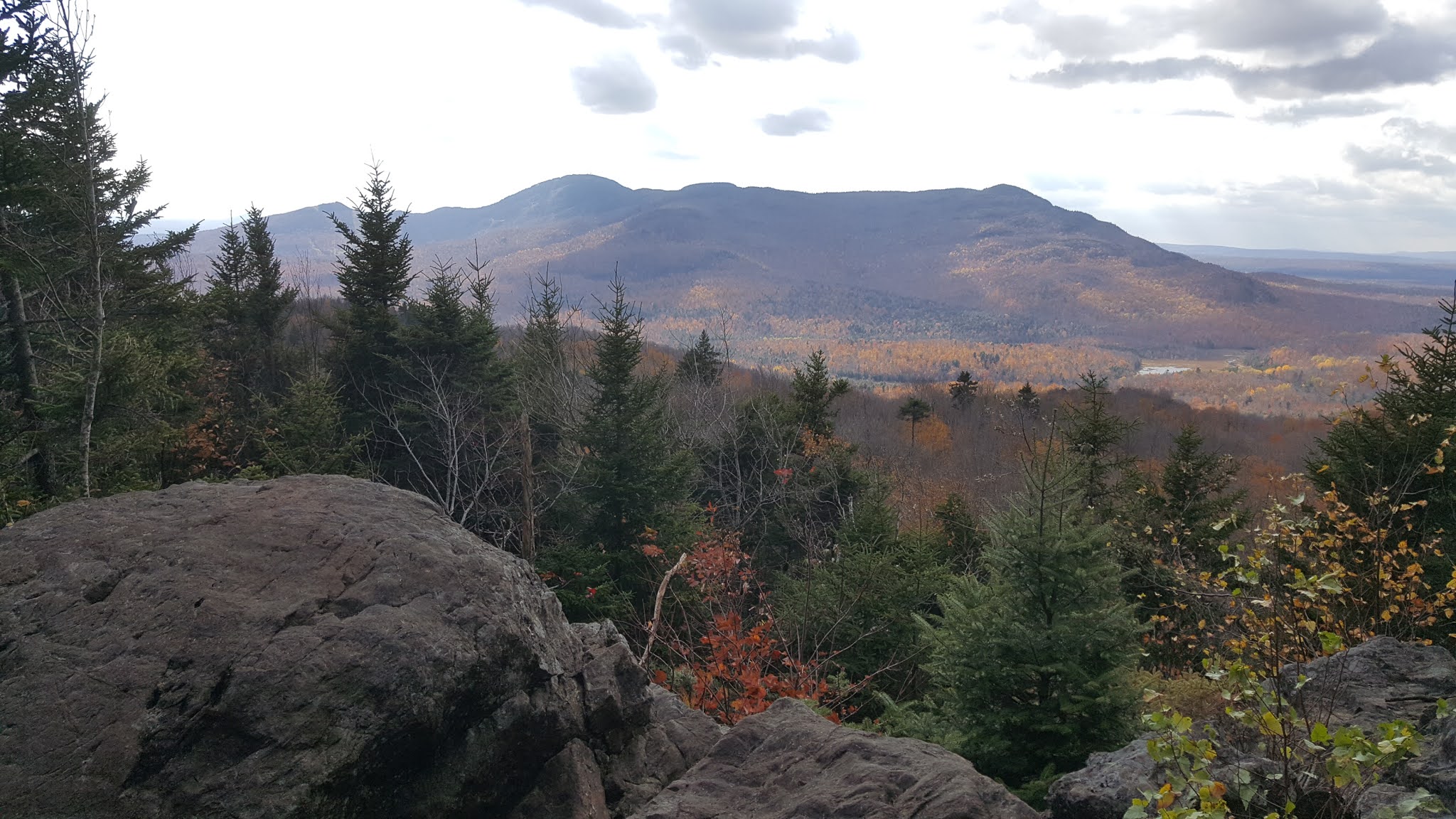 Puis, juste avant de terminer la boucle, vous croiserez le magnifique sommet du mont Chauve. Votre regard portera sur le lac Stukely, le mont Orford et les environs.