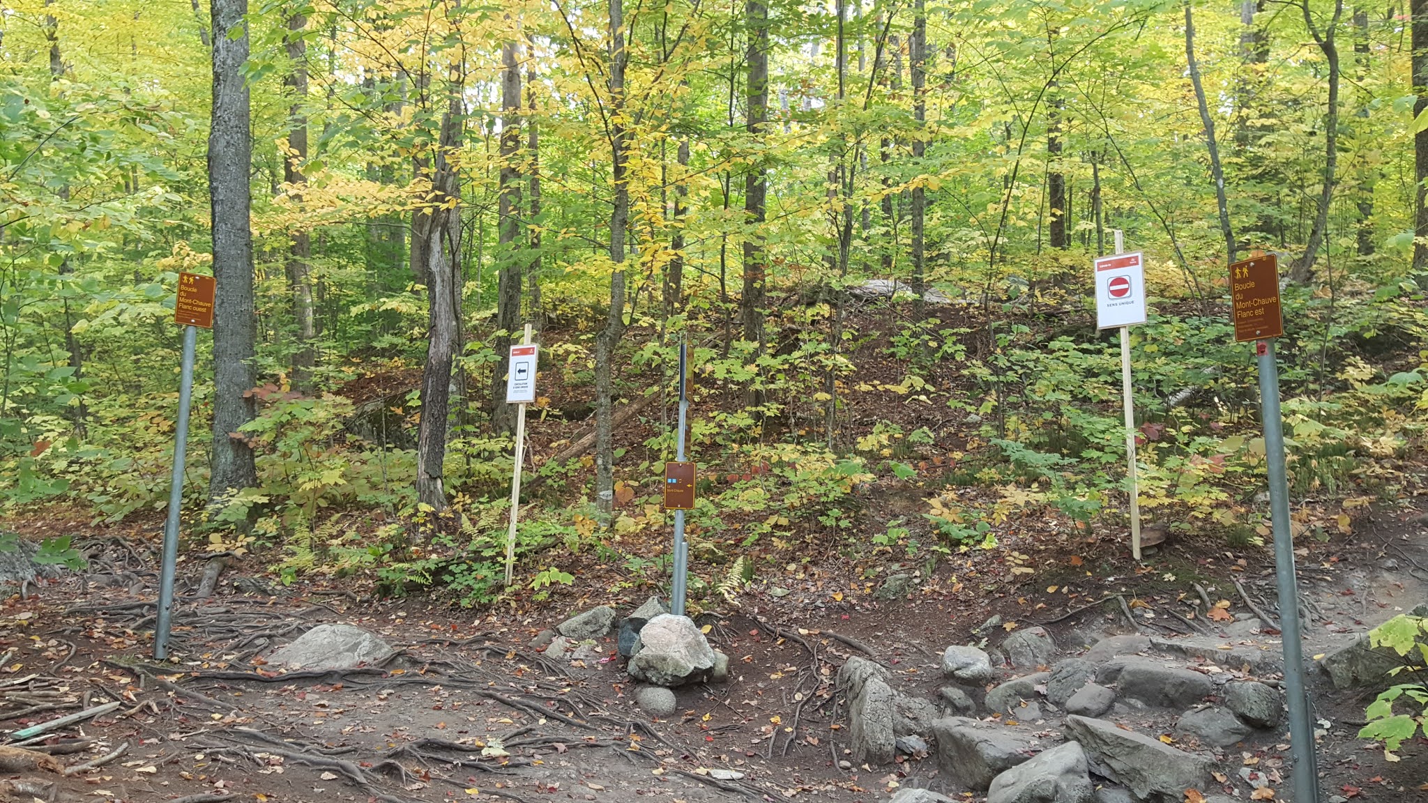 Au moment de ma randonnée, nous étions en temps de pandémie (COVID-19) et le sens permis pour faire la boucle du mont Chauve était dans le sens horaire!