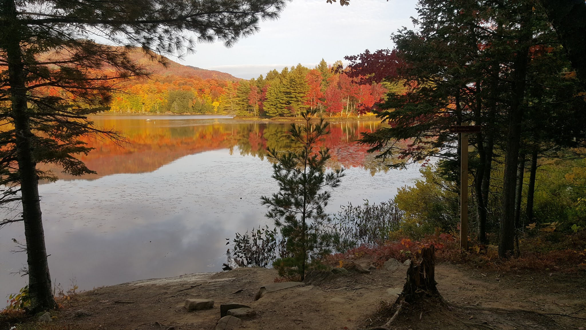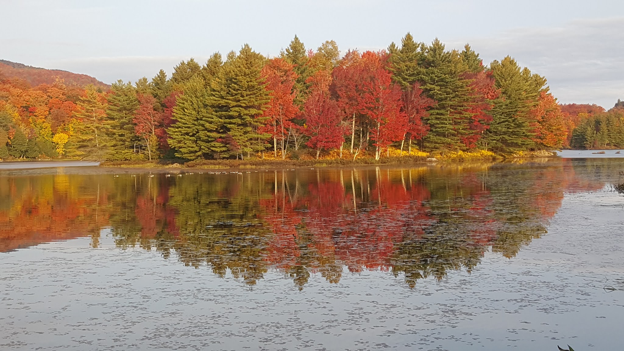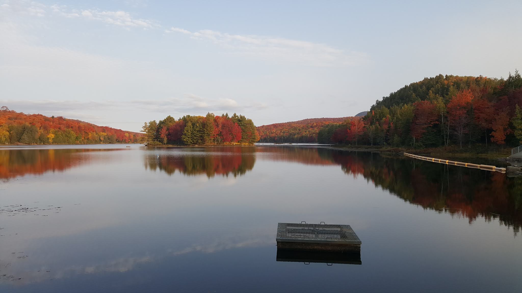 Vous longerez ce plan d’eau pour la première partie du parcours (sentier le Pékan) et pourrez admirer en arrière-plan le mont Orford.