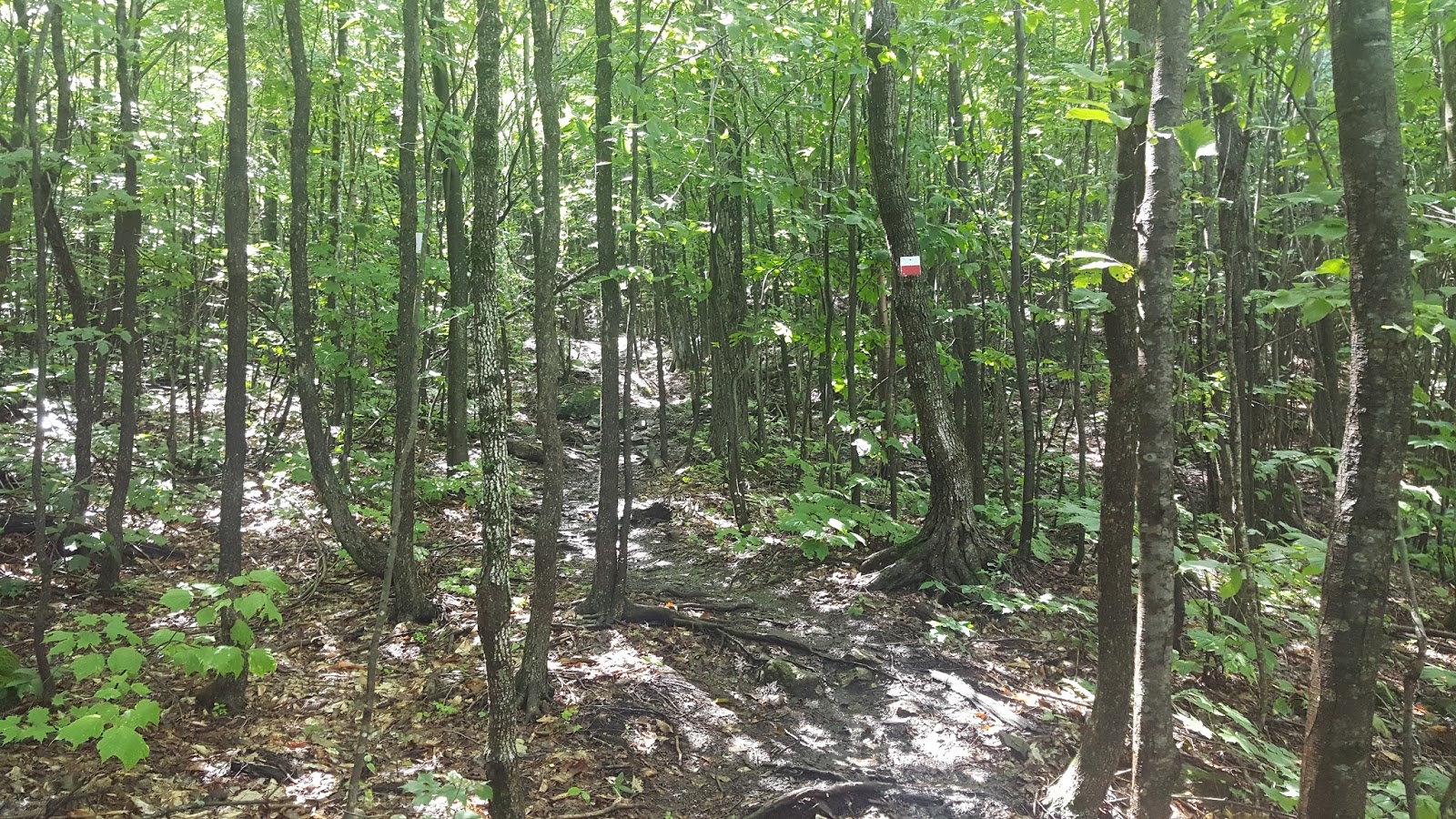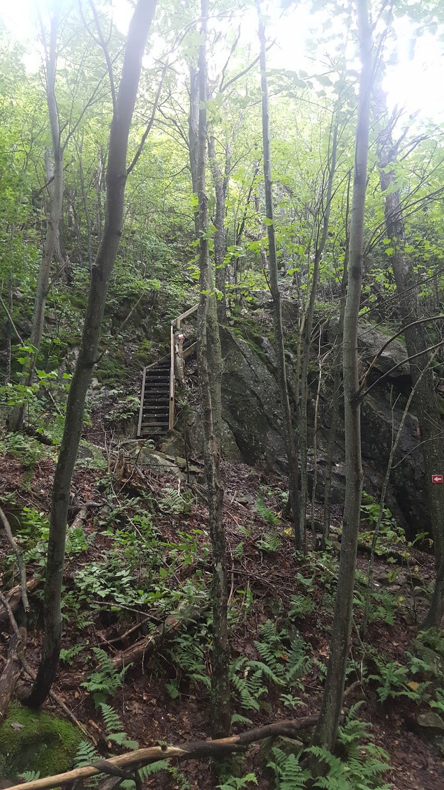 Du stationnement, vous devrez marcher environ 800m sur le Chemin North en direction Sud (vous passerez sous l’autoroute 10). Vous croiserez un petit chemin forestier à votre droite, c’est le début du sentier pour le mont Chagnon, très bien balisé à partir de cet endroit.