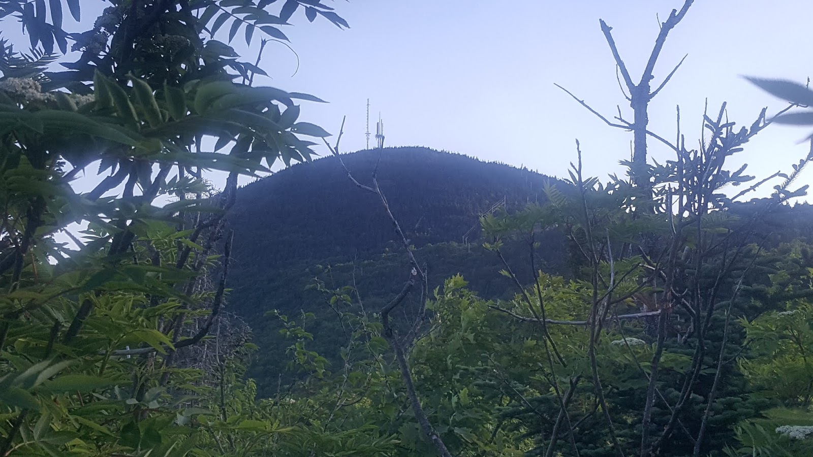 Le point le plus haut du mont Orford se situe là où vous voyez les antennes un peu plus loin.