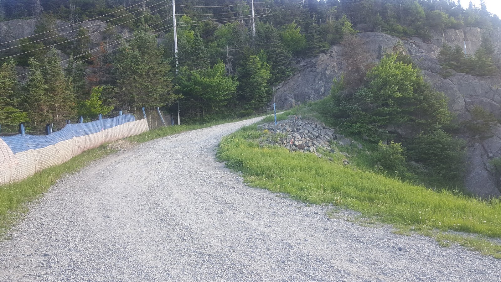 Correction 2024-05-06: Un petit chemin parallèle à la route réservée pour les randonneurs a été aménagé… beaucoup plus sécuritaire maintenant.