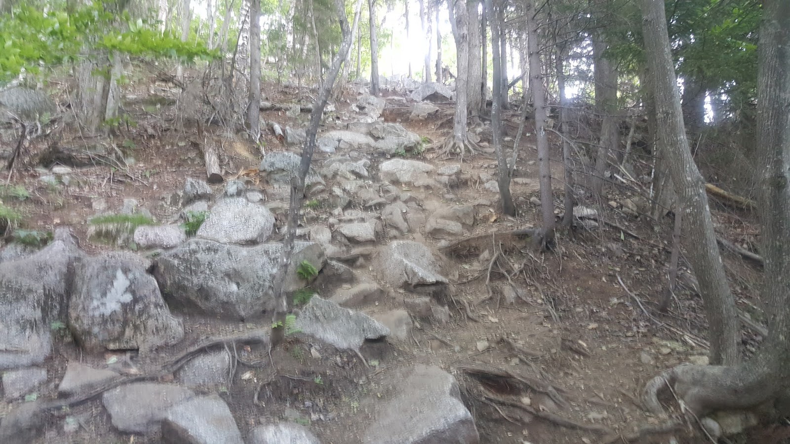 Et la montée se poursuit, souvent parmi les amas de roches qui peuvent vous rappeler les Adirondacks pour certains.. mais avec moins d’intensité bien sûr!