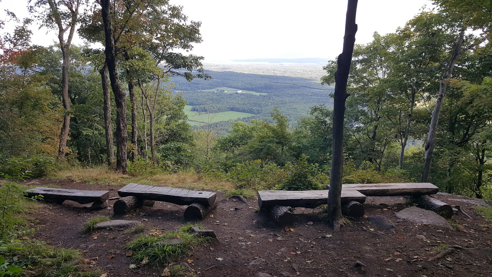 La vue au sommet est partiellement ouverte et offre un joli panorama sur la région, notamment sur le mont Brome, le lac Brome et Sutton.