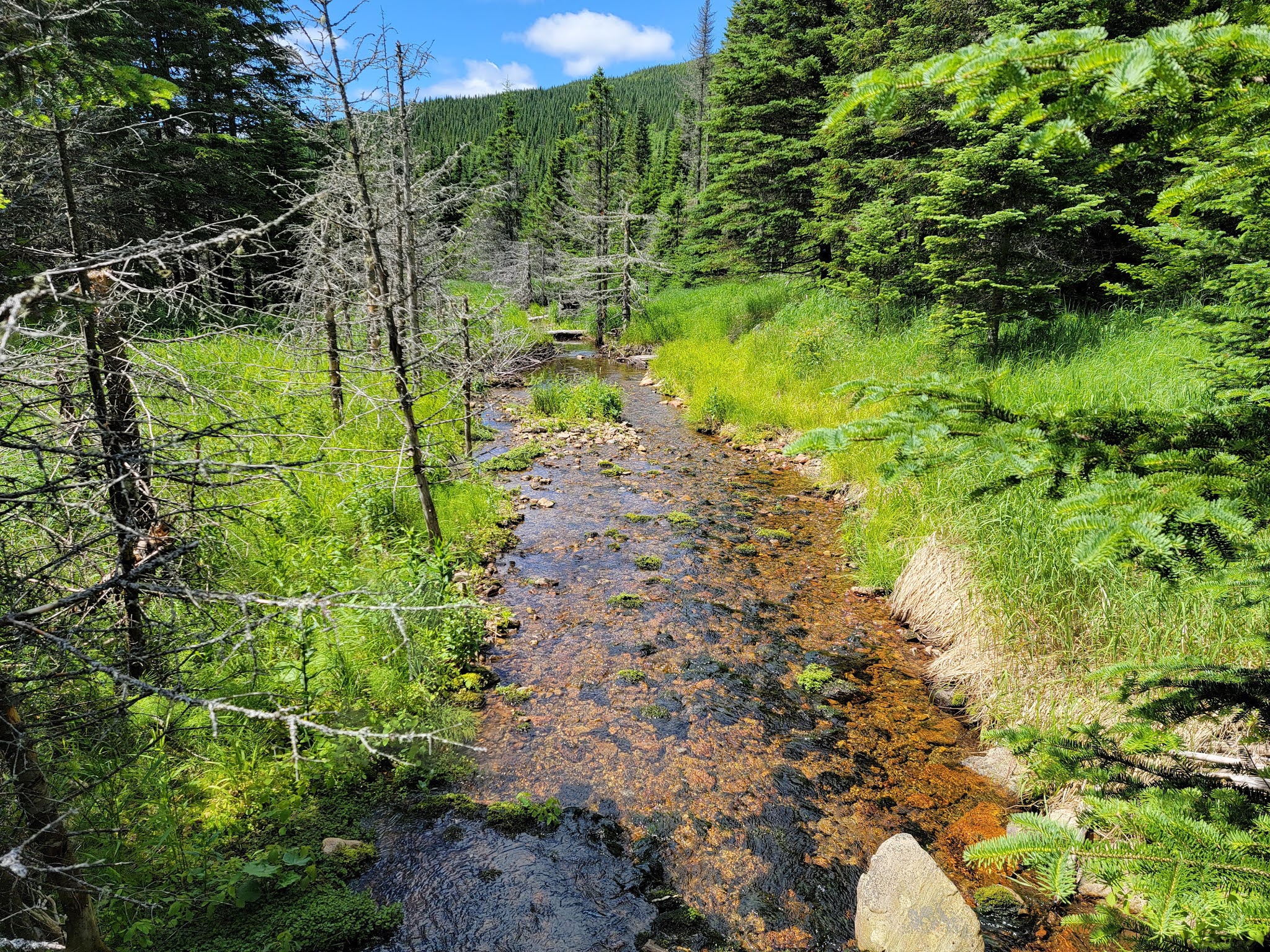 C’est dans cette section que vous rejoindrez et marcherez littéralement sur la frontière canada/usa. On aime ou on n’aime pas cette section… moi j’adore! En arrivant en sens horaire, vous grimperez un cap rocheux qui vous réservera une belle surprise une fois en haut de celui-ci…. une vue à couper le souffle!