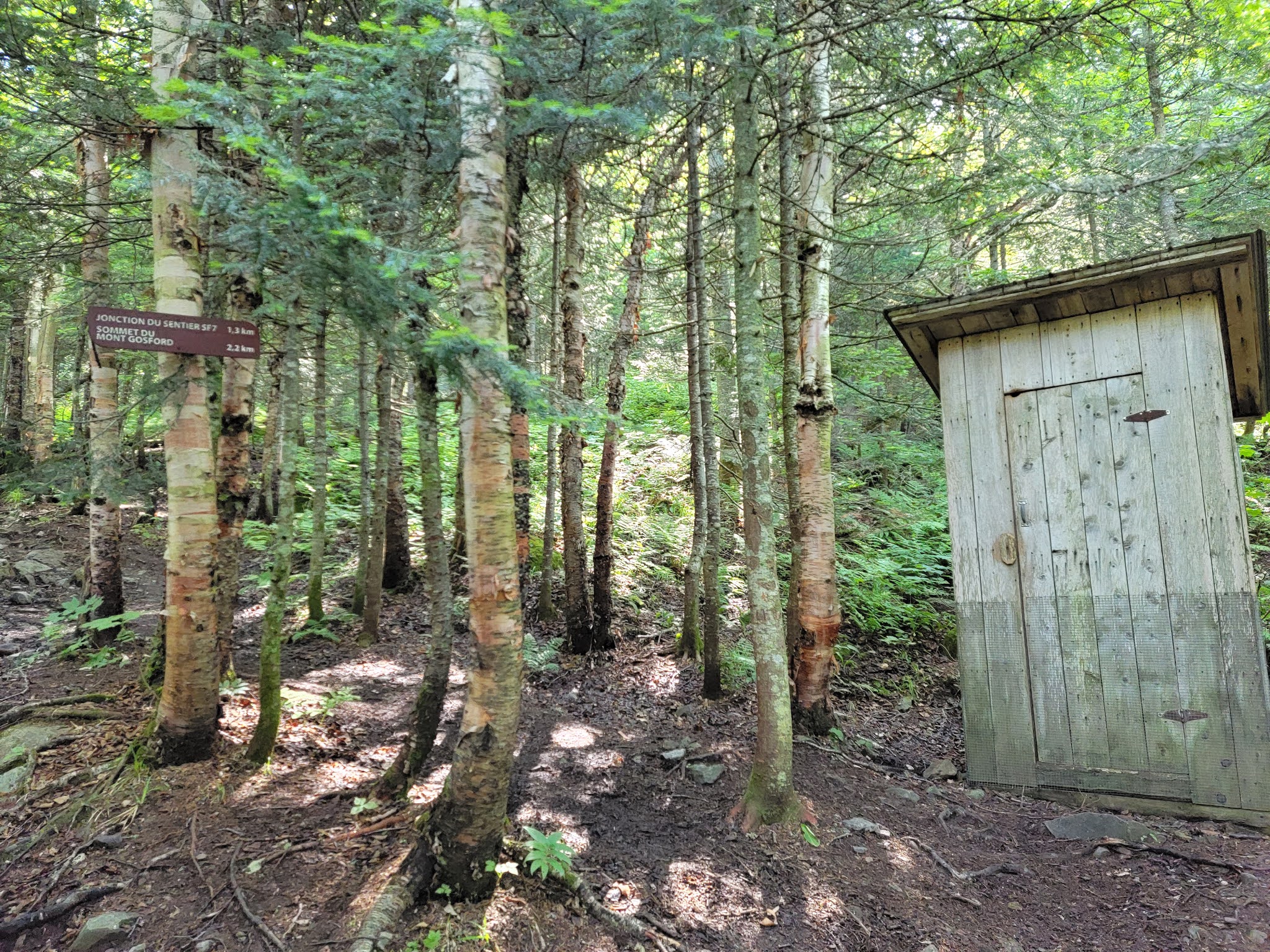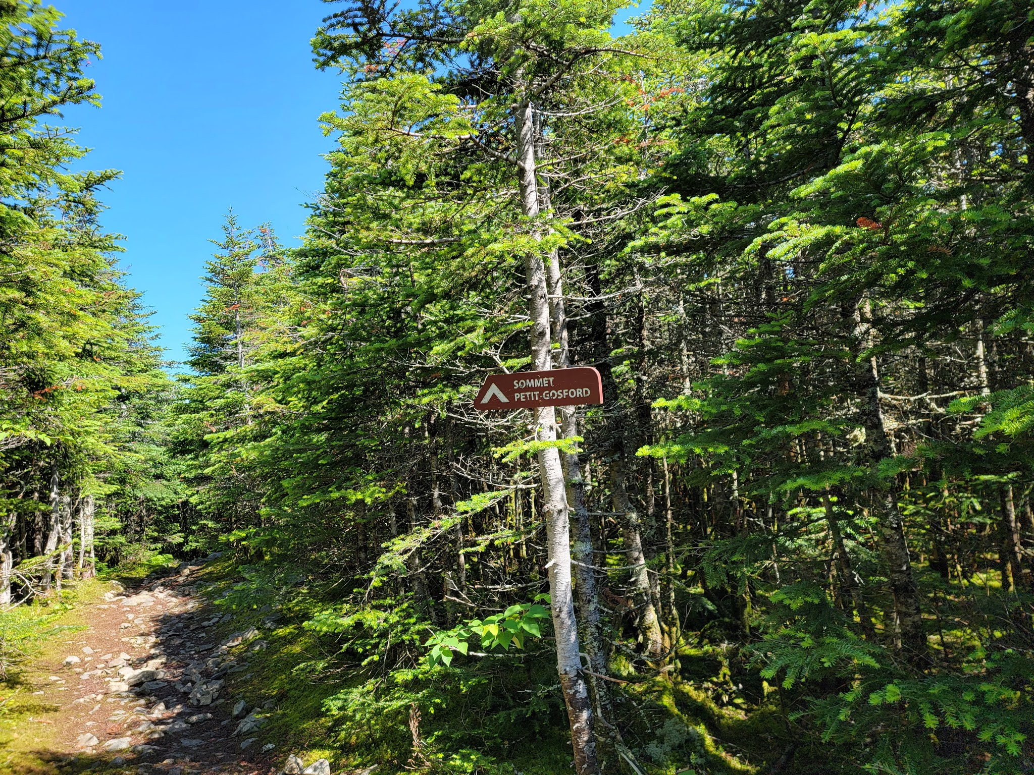 Suivi d’une courte remontée qui vous mène au sommet du Petit-Gosford à 1 100 m d’altitude. Le sommet est boisé, aucune vue ici, mais ne soyez pas déçu… le sentier en soi est superbe.