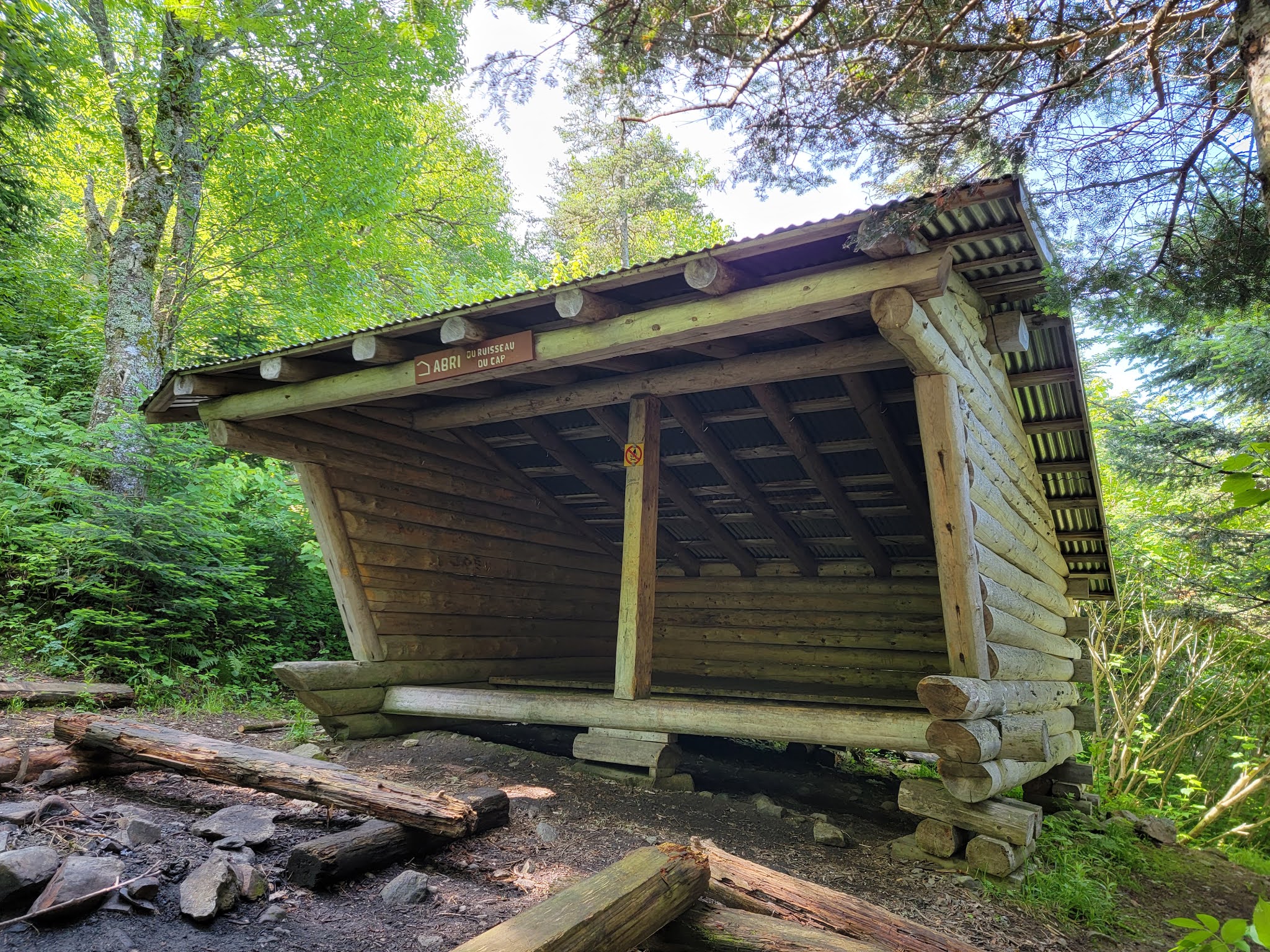 Vous croiserez l’abri 3-faces (lean-to) du Ruisseau du Cap, à 2.3 km du point de départ.