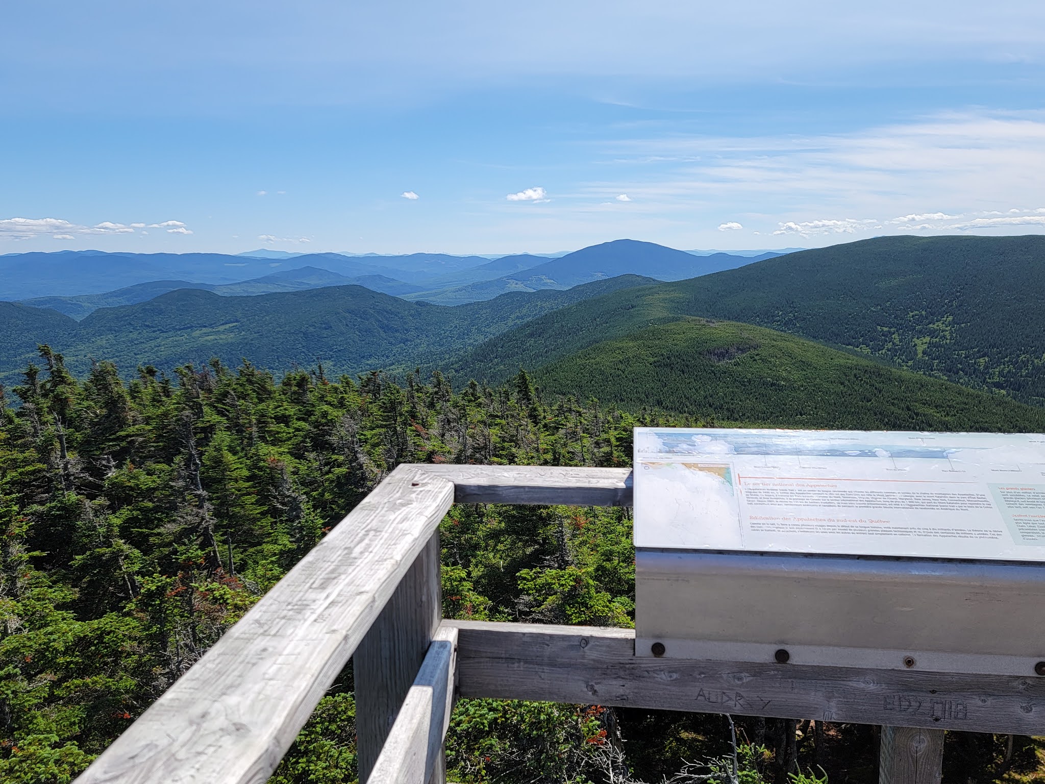 Perso., c’est ma randonnée favorite dans le sud de la province. Il est rare de pouvoir franchir 4 sommets dépassant les 1 000 m au Québec avec des vues aussi exceptionnelles. De plus, le fait de pouvoir marcher sur plusieurs km sur la frontière Canada / USA, chemin ‘buché’ à perte de vues sillonnant les monts et vallées, rend cette section unique en son genre.