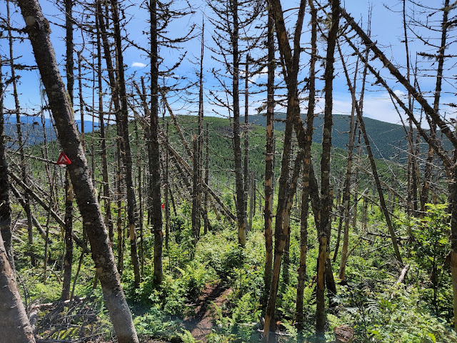 Poursuivons notre boucle en direction du sommet voisin situé tout près, le Petit-Gosford, à seulement 1.3 km plus loin. Ce sera alors une descente dans un tout autre décor…