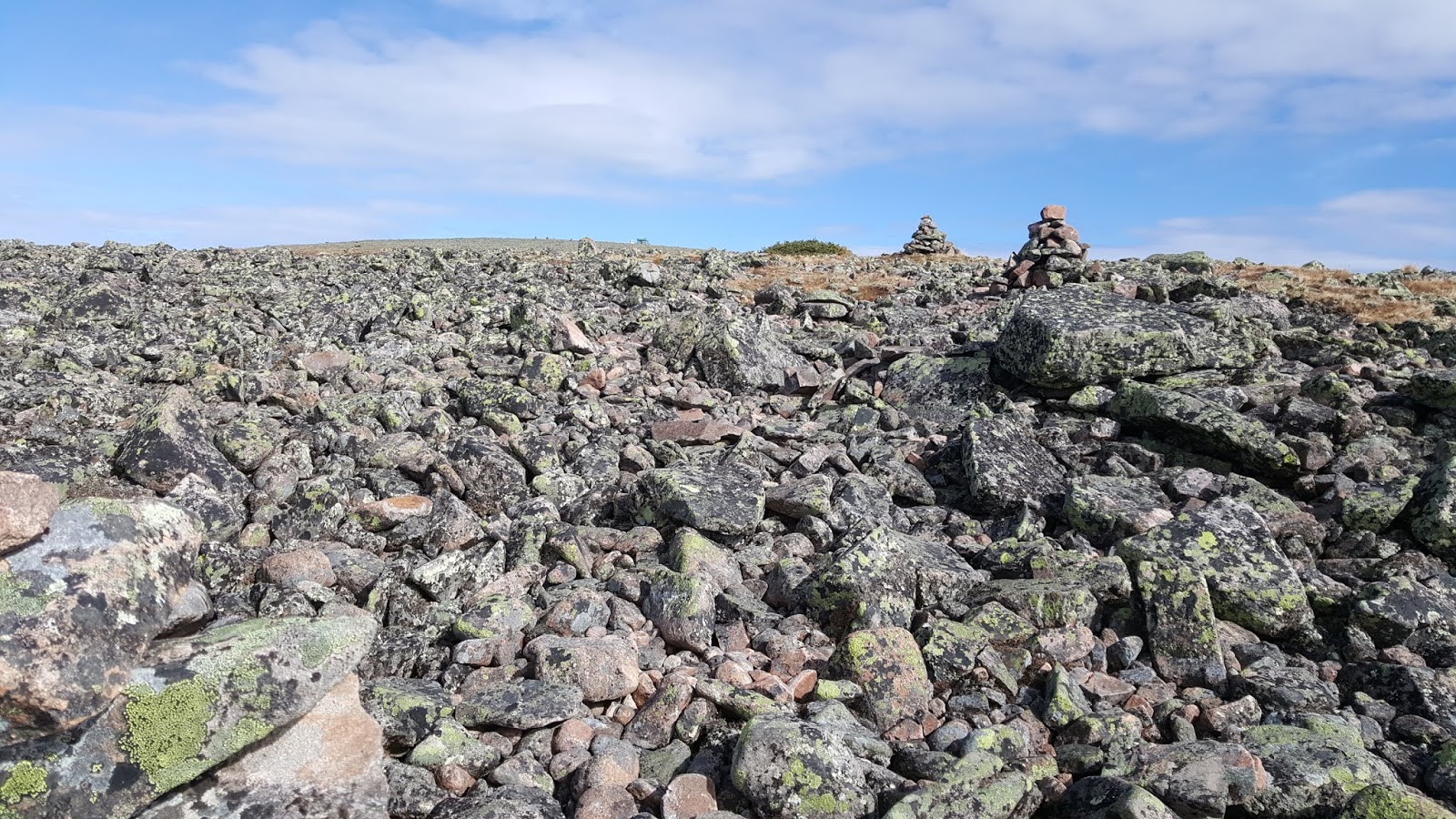 Portez attention aux cairns pour bien vous diriger dans les derniers km. Le terrain devient très rocheux et offre des panoramas à perte de vue. Gardez l’oeil ouvert, lors de ma rando (2018), c’est en montant ce versant que j’ai aperçu mon premier caribou de la randonnée.