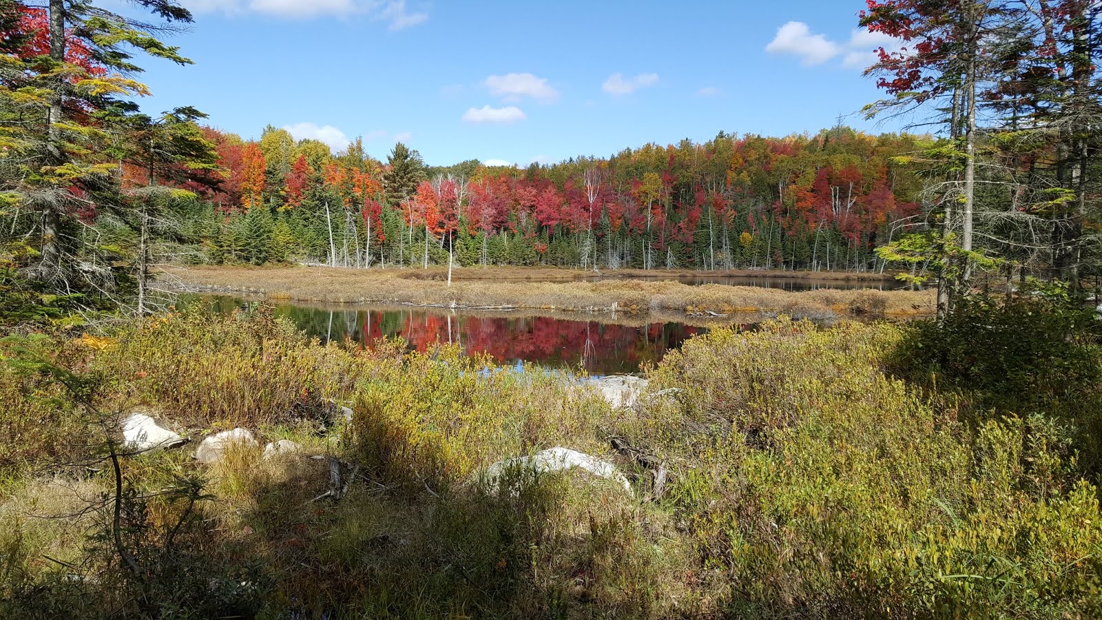 Le retour se fait sur le sentier «jaune» pour 2.1 km, continuez sur le sentier lors de votre prochaine intersection (à droite). La prochaine intersection vous mènera au sentier «rouge» du départ, prenez alors à gauche et revenez sur vos pas jusqu’au stationnement.