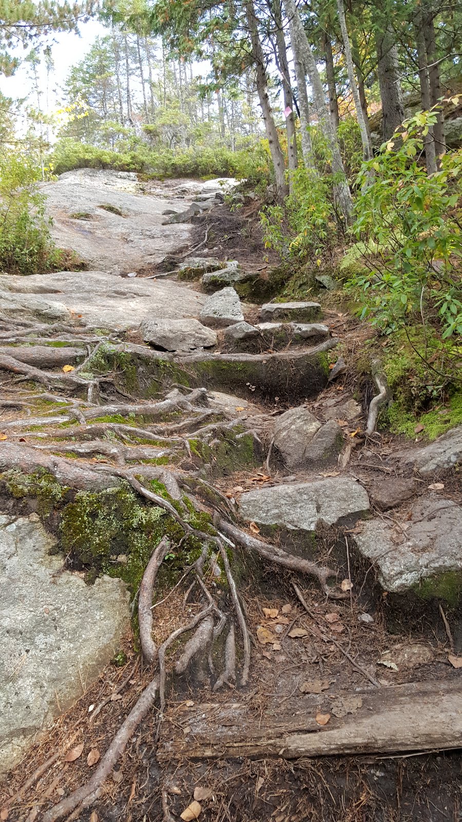 À l’intersection du refuge de L’accueil et d’un petit camping, juste à coté du Lac Guy, prendre le sentier à votre droite qui vous mènera au sommet du mont Brassard. Je vous propose le sens contraire de celui proposé par les panneaux d’affichage, l’avantage étant de terminer la boucle avec les plus beaux points de vue, en plus d’être plus tranquille dans votre direction (il faut dire que ce parc est très populaire et accueille parfois plus de 500 randonneurs durant les week ends ensoleillés).