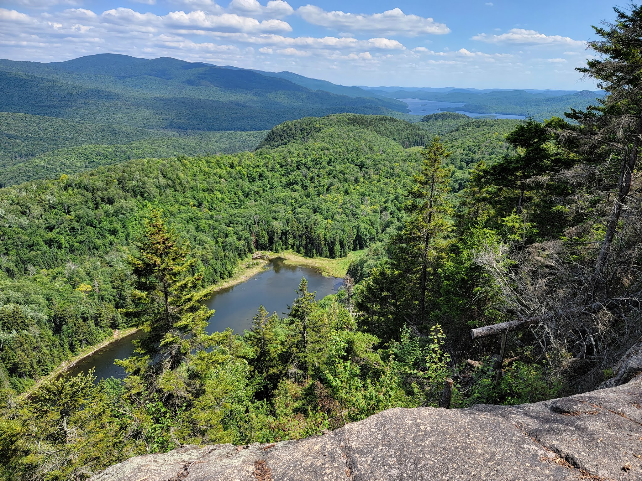 Le sentier se poursuit en forêt et longe de magnifiques parois rocheuses sur une courte section, avant d’atteindre le 2ième sommet. Une bonne montée pour vous rendre au sommet vous fera apprécier la vue sur le lac Tremblant et les montagnes tout autour, c’est un superbe décor et vous serez probablement seul!