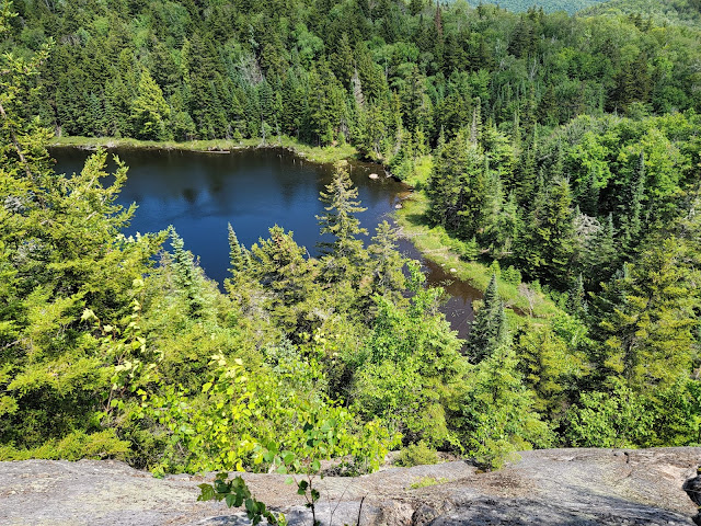 Le sentier est bien balisé, dans une belle nature et la montée n’est pas très difficile. Vous croiserez quelques étangs et le lac Inconnu avant d’arriver au sommet du mont Gorille. La vue est magnifique. La boucle se poursuit en descendant au bord du Lac de la montagne du gorille… c’est la section la plus accentuée et plus technique, on y retrouve des cordes pour faciliter la descente.