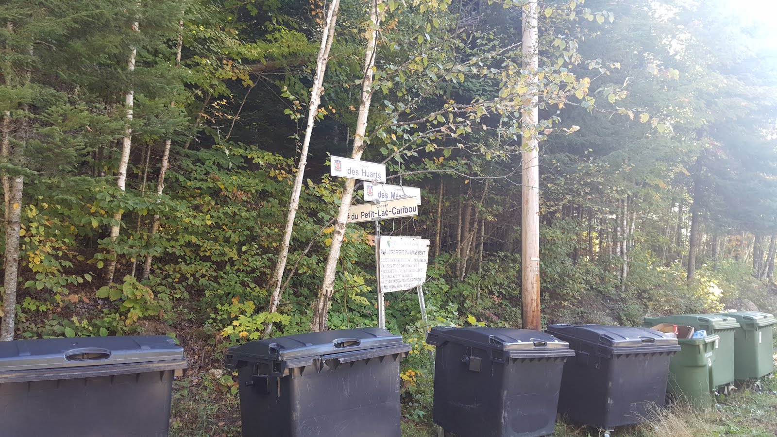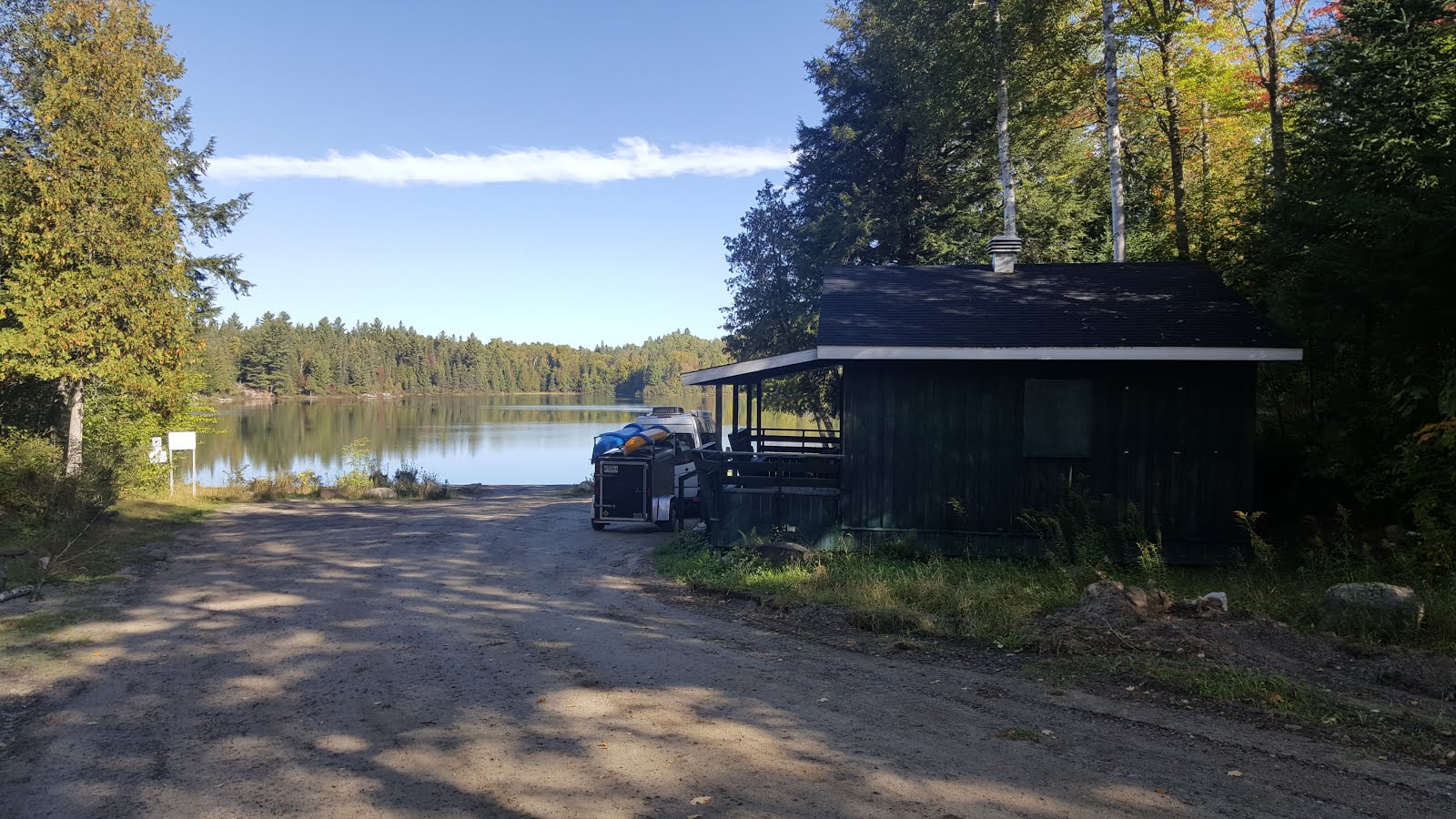 Le point de départ de la randonnée se prend tout près du Petit Lac Caribou, vous sauverez les 5 premiers km qui sont moins intéressants (croisements de routes, pas de dénivelé) et rendra la randonnée moins longue… vous aurez quand même autour de 18 beaux km au total 😄. Le stationnement est tout près d’un ancien chalet de pêche sur votre gauche, au bout du Chemin du Petit-Lac-Caribou. Il y a une toilette sèche tout près du stationnement et le joli Petit Lac Caribou.