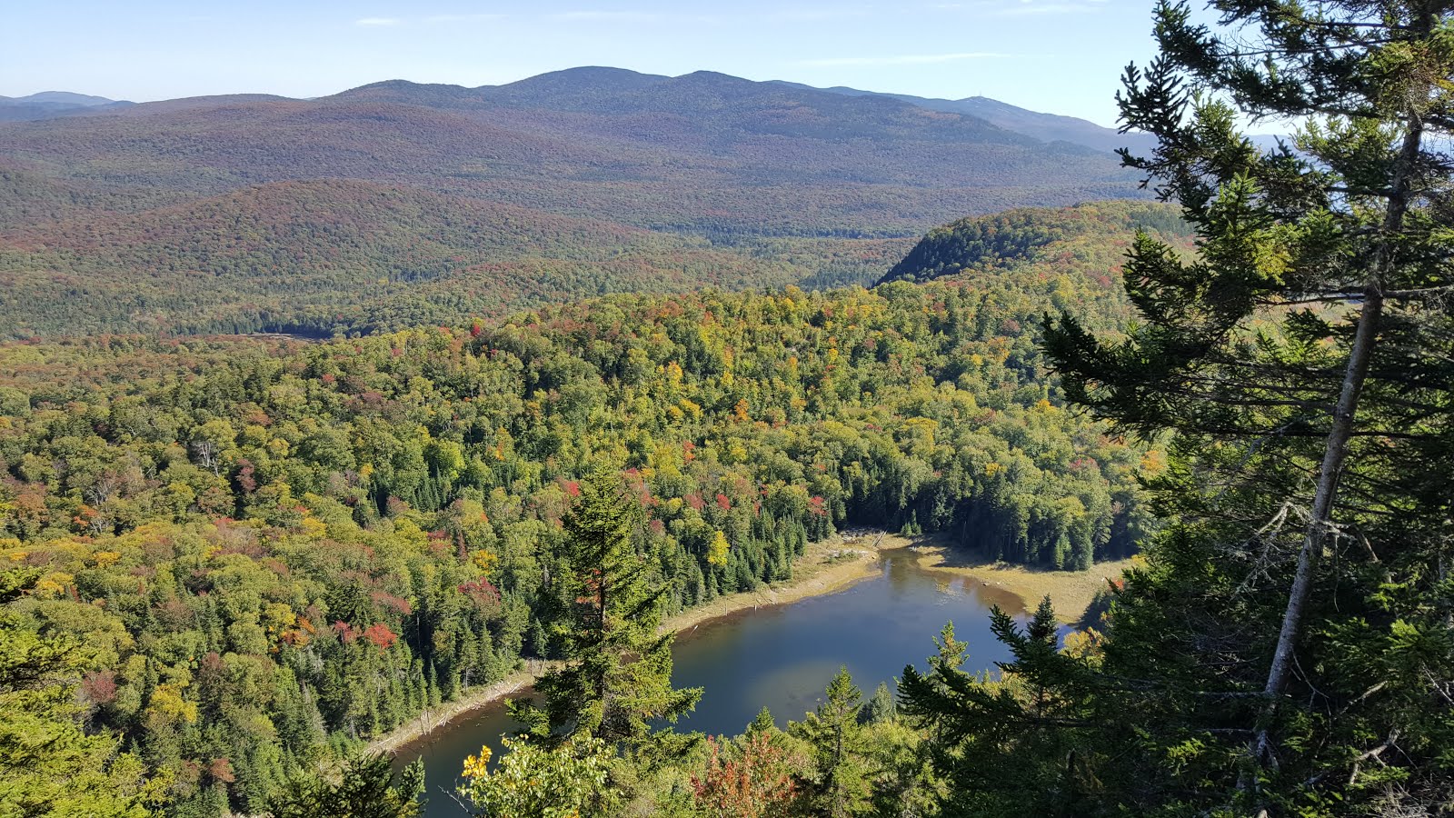 Après à peine 2 km, les points de vues font déjà leur apparition avec des vues sur les montagnes environnantes et les lacs Joly, Petit-Caribou et Nantel.