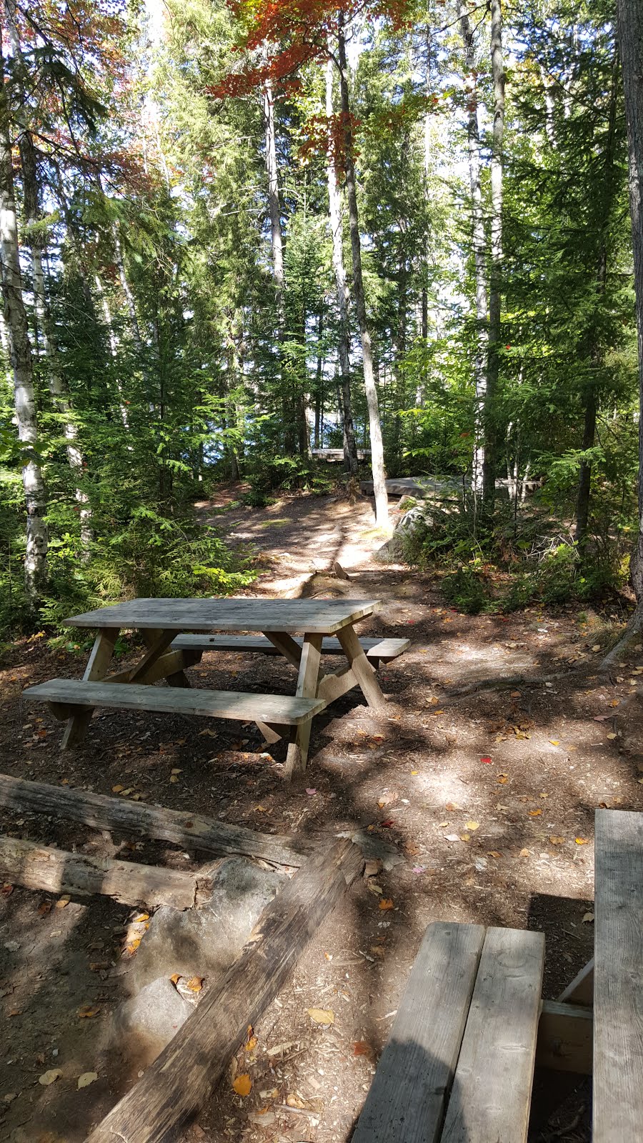 On poursuit sur le même sentier balisé rouge et blanc, avec la présence d’autres parois rocheuses et quelques montées et descentes… vers le prochain attrait, le joli lac Nantel. C’est l’endroit parfait pour prendre une pause ou une collation, il y a même des aménagements pour faire du camping rustique et quelques tables à pique-nique. L’endroit est vraiment joli.