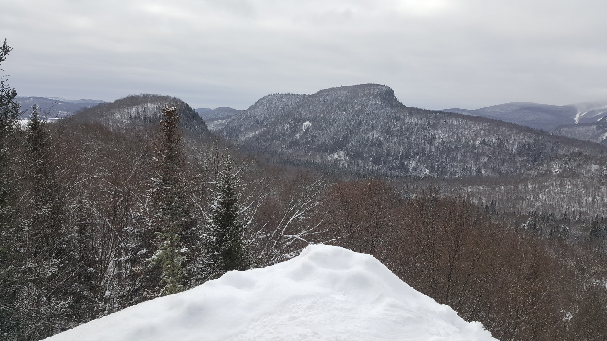 J’ai effectué la boucle (en forme de ‘8’) en començant à gauche, dans le sens anti-horaire. On rejoint alors le sommet du Panorama en moins de 1 km. Le sentier est bien balisé et facile dans son ensemble, les points de vues occasionnels sont magnifiques, dont ceux offerts sur chacun des sommets!