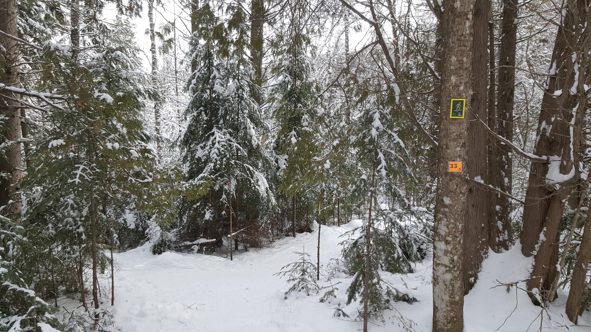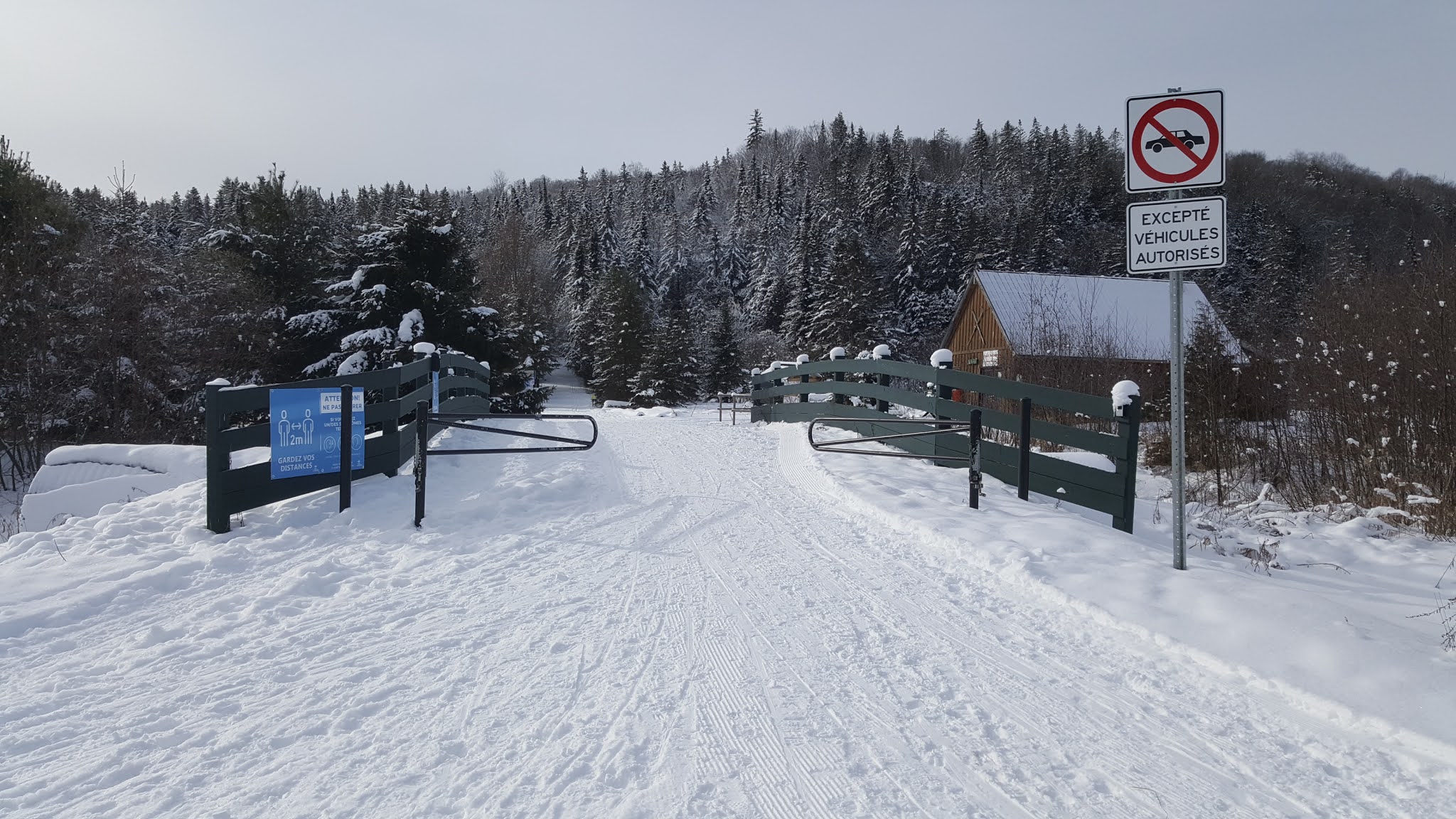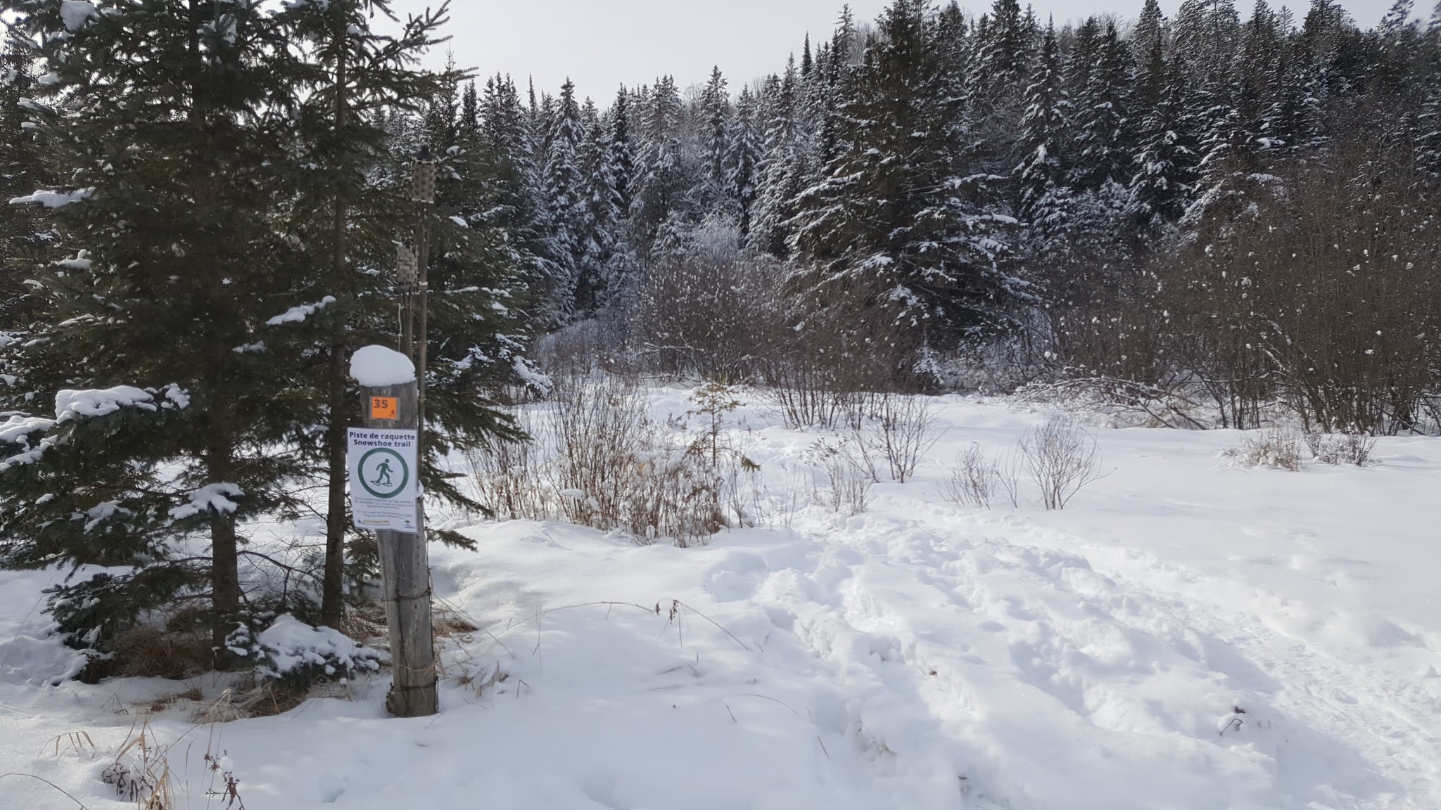 On retrouve plusieurs sentiers de ski de fond et de raquettes comme le montre bien le point de départ!