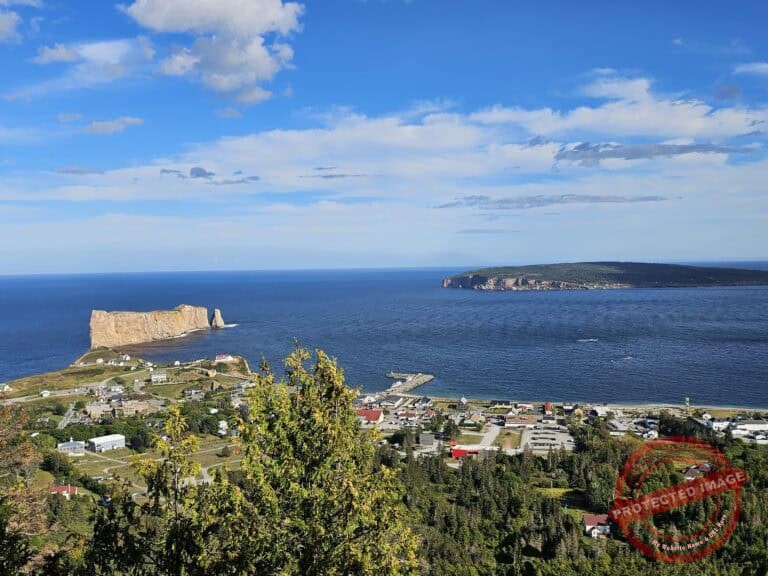 Sentiers aménagés passant par plusieurs attraits (tour observation, plateforme avec plancher vitrée, statue Vierge Marie,…) et avec des vues renversantes sur le Rocher Percé et le village de Percé.